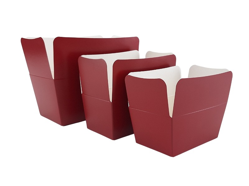 Artikelnummer: 3367BR Luxe bordeaux rode bonbondoosjes voor het verpakken van bonbons, pralines, truffels en andere chocolaatjes. Naast chocolade verpakking is een ballotin ook heel goed als geschenkverpakking te gebruiken. De grotere formaten worden zelfs gebruikt voor het verpakken van kleine gebakjes zoals cupcakes en petit fours. De pralinedoosjes zijn wit aan de binnenzijde en worden (plano) geleverd inclusief een goud glimmend bodemkarton. Op zoek naar een andere kleur?