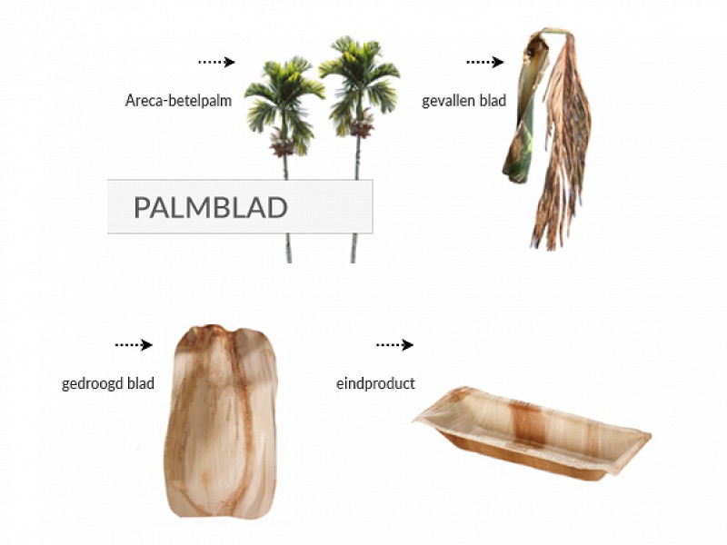 Artikelnummer: 800.520 Borden gemaakt van palmblad zijn een milieuvriendelijk alternatief voor plastic borden. Dit bordje heeft een diameter van 26 cm en kan dus heel goed gebruikt worden voor hoofdgerechten. Voor een ander formaat zie gerelateerde artikelen onderaan de pagina. Palmblad servies is gemaakt van natuurlijk gevallen palmbladeren van de Areca Betelpalm. Producten van palmblad zijn diepvriesbestendig, geschikt voor gebruik in de oven en magnetron tot 200°C. Bovendien zijn palmblad producten 100% composteerbaar.