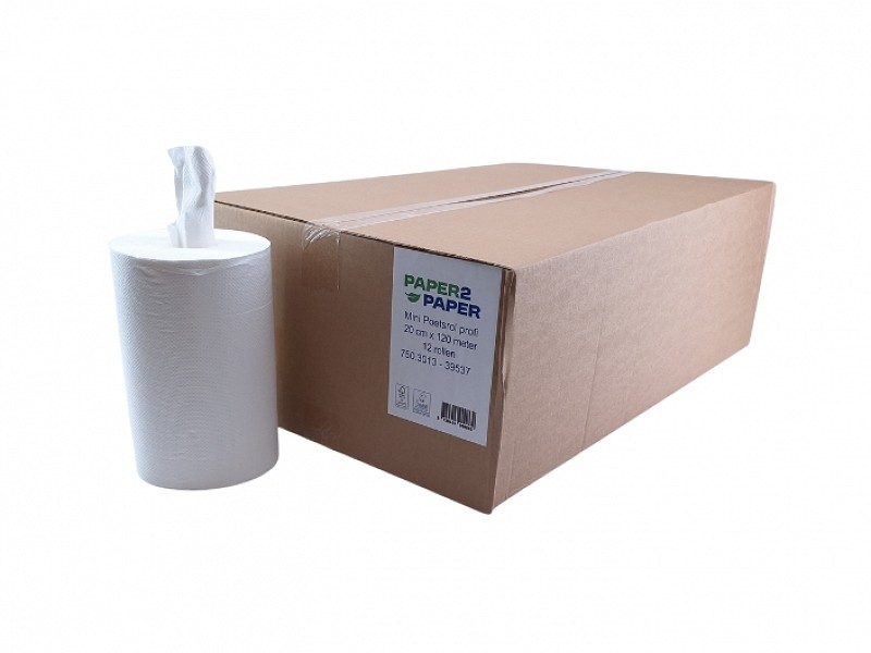 Onze mini poetsrollen van het merk Paper2Paper zijn gemaakt van sterk, 1-laags embossed cellulose papier. Deze rollen zijn kokerloos en hebben een hoog absorptievermogen, waardoor ze perfect zijn voor het snel drogen van handen of het reinigen van oppervlakken. Dankzij het compacte formaat passen ze in Mini poetsroldispensers en zijn ze ideaal voor gebruik op locaties met beperkte ruimte.