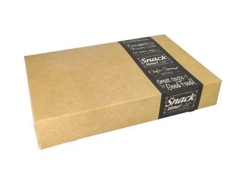 Artikelnummer: 85921 Cateringdozen voor het presenteren, serveren en vervoeren van mooi opgemaakte gourmetschotels, bbq schalen of andere cateringgerechten. Ook voor het verpakken van belegde broodjes zijn deze catering dozen uitgevoerd in het GOOD FOOD dessin uitermate geschikt. Deze dozen zijn verkrijgbaar in nog 2 formaten: De cateringdozen zitten per 10 stuks onder verpakt in folie.Cateringdozen “Pure”