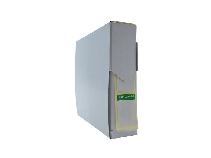 Artikelnummer: ETIKET.DONDERDAG Om veilig om te gaan met voedsel in professionele keukens zijn het gebruik van HACCP dag stickers onmisbaar. Door het plakken van datummarkeringsstickers op versproducten weet iedereen wat de uiterste gebruiksdatum van het product is. De codeerstickers zijn gemakkelijk in gebruik en hebben elk een andere kleur zodat het verschil in de dag etiketten goed zichtbaar is. Deze datum stickers hebben de tekst "Donderdag".Houdbaarheidsetiketten