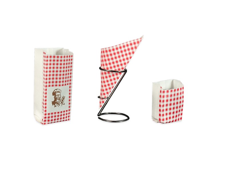 Serveer kleine frietporties en bijgerechten op een stijlvolle en herkenbare manier met papieren frietzakken K17 in het klassieke rode ruitmotief. Deze stevige, vetvrije ersatzpapierpuntzak houdt de inhoud warm en knapperig, waardoor kleine frietjes of snacks er professioneel en aantrekkelijk uitzien. Ideaal voor cafetaria’s, broodjeszaken, foodtrucks en andere horecazaken die waarde hechten aan nostalgische presentatie.